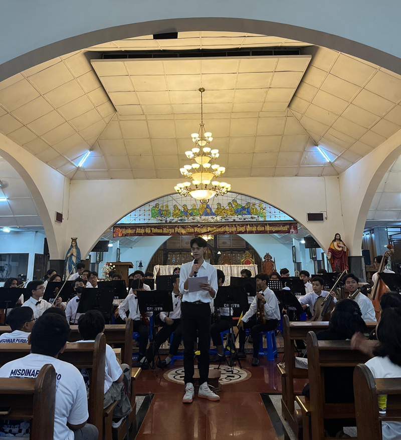 Mertoyudan, Jendela – Canisii Seminarium Symphony Orchestra (CSSO) dan Canis Choir (CC) menggelar aksi promosi panggilan pada Sabtu, (23/11) hingga Minggu (24/11) di Paroki Santa Perawan Maria Purbowardayan, Kecamatan Tegalharjo, Kabupaten Jebres, Kota Surakarta, Jawa Tengah. Keberangkatan para seminaris dan staf pendamping dibagi menjadi dua grup, yakni menggunakan satu bus pariwisata besar dan satu bus pariwisata kecil. Begitu pun dengan peralatan orkestrasi diangkut dengan menggunakan bus. Rombongan ini berangkat pada Sabtu, (24/11) pukul 10.00 WIB dan tiba di paroki pada pukul 13.20 WIB.